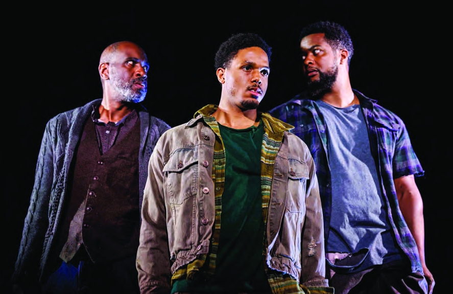 The three actors carry the show. Julian Rozzell plays Bird, the older, wiser voice of the trio; Kamal Bolden plays Slim, the middle-aged grandstander; and Bryce Foley plays Blood, the fiery, emotional youngster. Like the Holy Trinity, they are positioned clustered together on the stage, with two slightly behind the third.