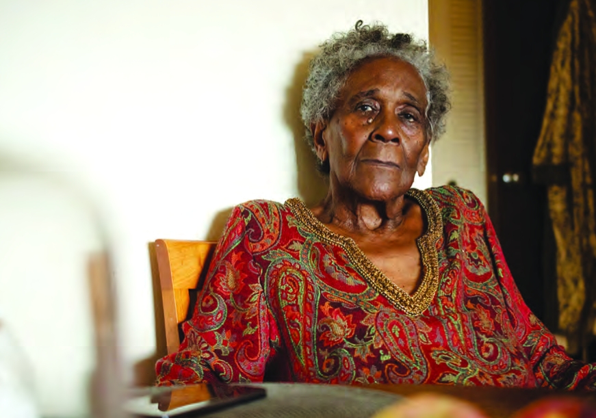 poses for a photo in her home, Oct. 31. Residents of the building,