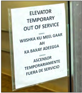 The building has two elevators for residents to use. Of those, the rear elevator has not been working for over two months, to date.