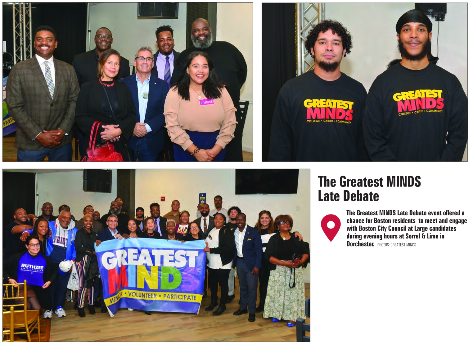 The Greatest MINDS Late Debate event offered a chance for Boston residents to meet and engage with Boston City Council at Large candidates during evening hours at Sorrel & Lime in Dorchester. PHOTOS: GREATEST MINDS