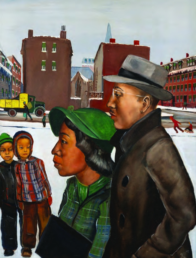Crite’s parents, Annamae and Oscar, raised him to participate in their parish and neighborhood as well the surrounding city. Annamae nurtured her son’s talents, taking him to art lessons in the South End at the Children’s Art Centre and visits to the Museum of Fine Arts, Boston as well as to the Gardner.