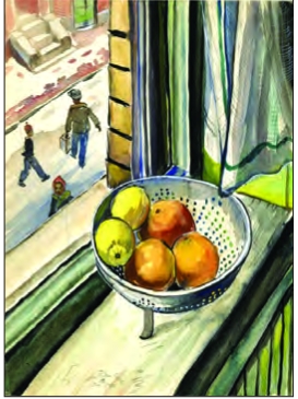 the lyrical “Fruit and snow: from my window at 2 Dilworth St.” (1940),