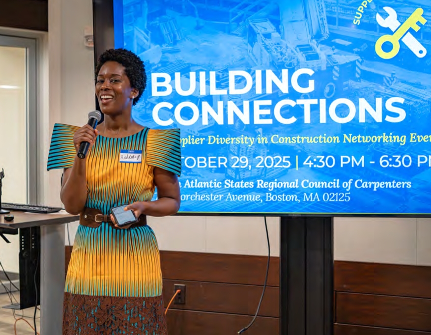Andrea Caruth, director of supplier diversity for the City of Boston welcomes participants to the networking event.