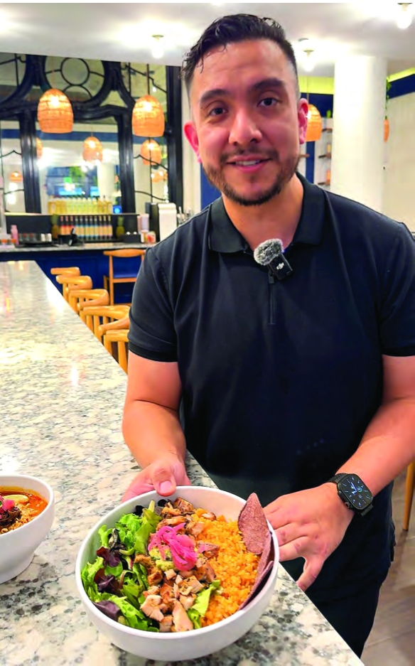 Dan Leyva, owner of Taco Azul. The restaurant offered free meals (above right) to people in need during the recent government shutdown.
