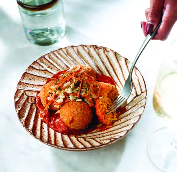 Visual art is as important to the team as culinary artistry. To ground the design, Rai and Perry commissioned pieces by local artists including Hazen Hill Flowers, Nina Bhattacharya, (“Radio Rani”), Ifé Franklin, Payal Kumar and Stephen Hamilton.