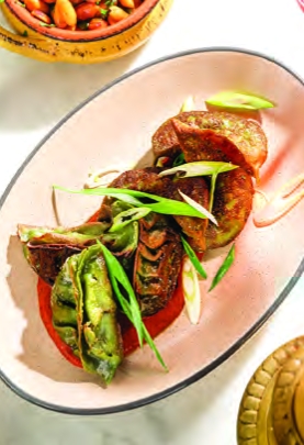 Biplaw Rai and Nyacko Pearl Perry, co-owners of Comfort Kitchen, will bring an Afrodiasporic, global menu to their new restaurant Ama, opening in January. (Left) Lamb Biryani Arancin, (Below) Vegetable Momo