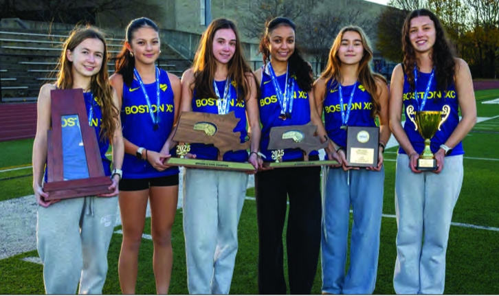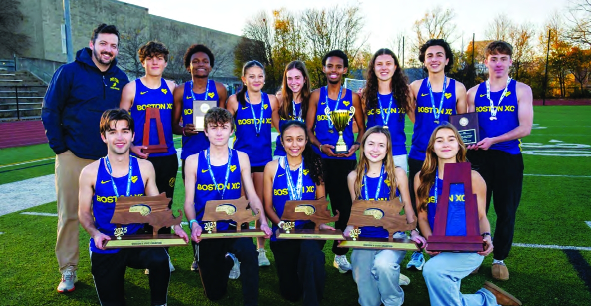 The glittering glow of athletic history has landed on the Boston Co-op Cross-Country team that recently won the M.I.A.A. (Massachusetts Interscholastic Athletic Association) Division 2 Championship for the first time in the 100+ year event. The official notification is that the M.I.A.A has sponsored the Boys’ competition for 68 years and 65 years for the Girls’ contests.