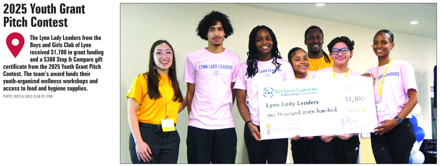 The Lynn Lady Leaders from the Boys and Girls Club of Lynn received $1,700 in grant funding and a $300 Stop & Compare gift certificate from the 2025 Youth Grant Pitch Contest. The team’s award funds their youth-organized wellness workshops and access to food and hygiene supplies.