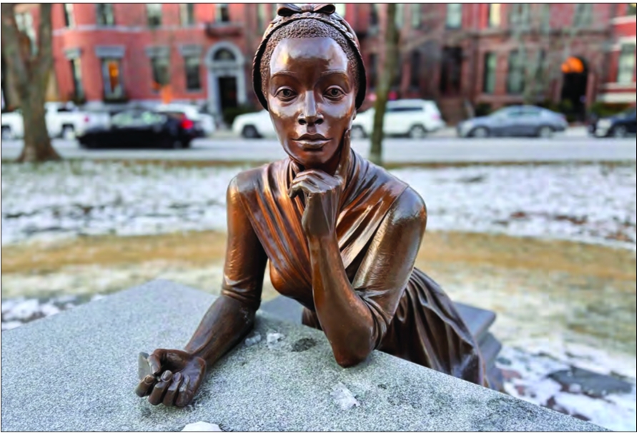 A sculpture of Phillis Wheatley Peters is part of the Boston Women’s Memorial on Commonwealth Avenue in Back Bay.