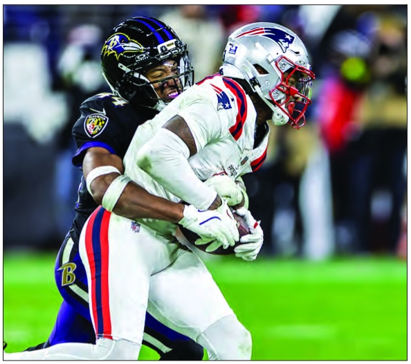 Patriots wideout Stefon Diggs had nine catches for 138 yards in the win over the Ravens.