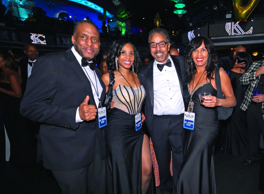Event promoter Terrol Calloway and guest Hannah Clemador, event producer Steve Anglin and guest Janene Facey Palumbo celebrate at the New England Black Tie Winter Gala.