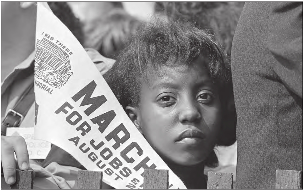 A young marcher participating in the March on Washington for Jobs and Freedom at the Lincoln Memorial in Washington, 1963.