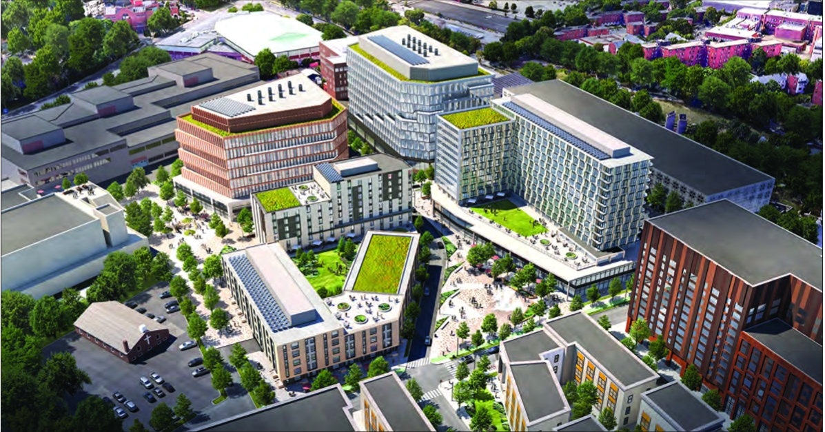An architect’s rendering of the HYM/My City at Peace development proposal for Parcel P3 in Roxbury. That plan has been shelved by the city in favor of a new Madison Park High School campus.