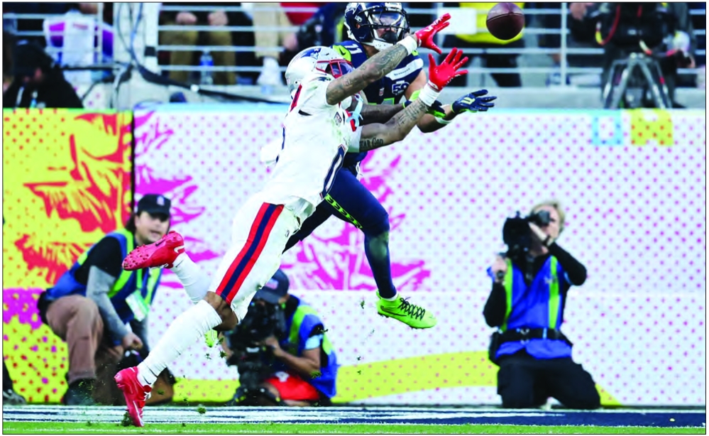 Patriots cornerback, Christian Gonzalez, breaks up a sure touchdown pass in Super Bowl LX.