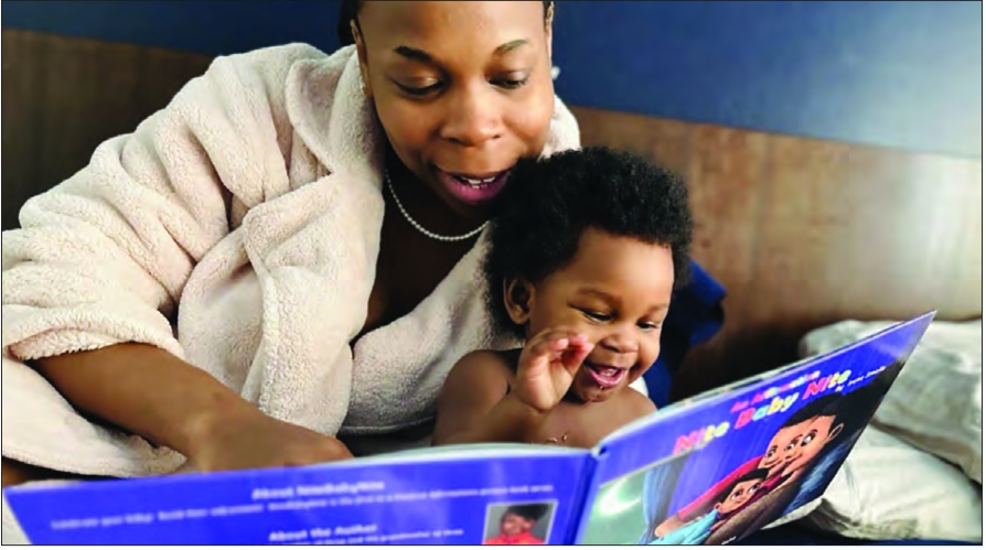 Mother reading Nite Baby Nite book written by Irene Smalls.
