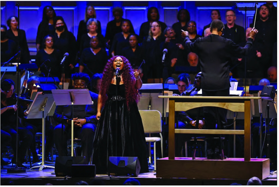 (Above) Soprano Jekalyn Carr performs with the Good News Mass Gospel Chorus. (Below) The Crossing performs David Lang’s “poor hymnal,” conducted by Donald Nally.