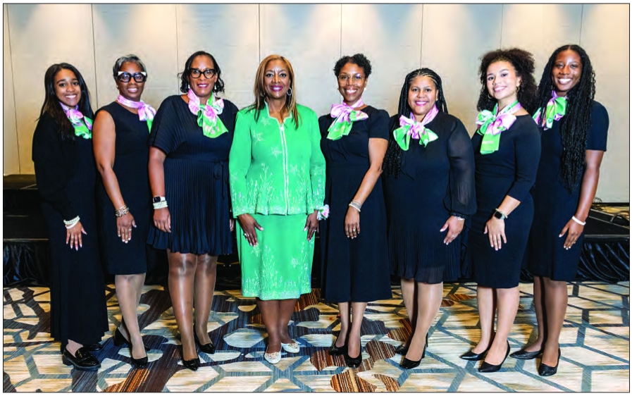 Members of the Alpha Kappa Alpha Sorority, Inc. NARC Steering Committee: (From left) Nia McLean, Shenae Draughn, Latosha Johnson, North Atlantic Regional Director Elicia Pegues Spearman, Conference Chairman Kafi Meadows, Nancy Rachel Rousseau, Peyton Bryant, and Caroline Figaro.
