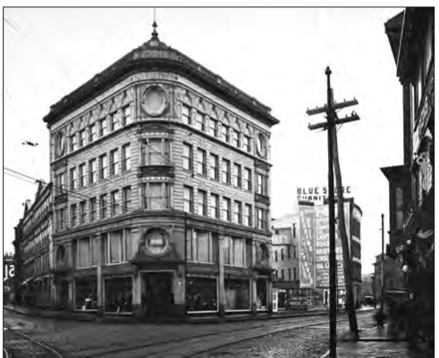 Ferdinand’s Blue Store on the corner of Washington and Warren Streets, 1899.