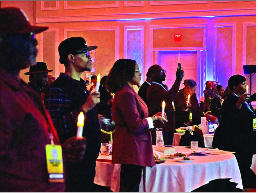Community members and advocates participate in a Light of Hope ceremony to recognize the impact of suicide at the fifth annual DeeDee’s Cry Summit, Feb. 13 at Encore Boston. The event marked one local effort to raise awareness about Black mental health issues.