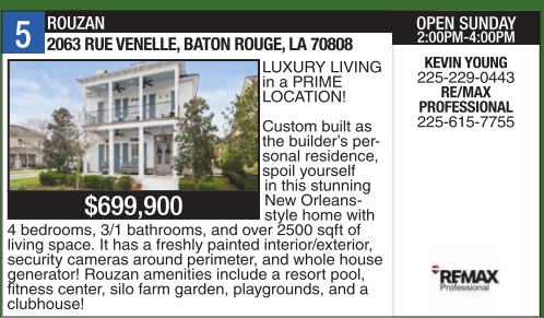 OPEN SUNDAY 2:00PM-4:00PM KEVIN YOUNG 225-229-0443