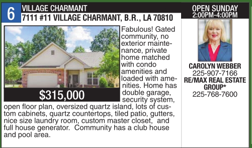 OPEN SUNDAY 2:00PM-4:00PM CAROLYN WEBBER 225-907-7166