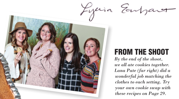 A cookie swap/Stylewatch feature idea was planned to include some of our freelancers as the models and bakers. Lana Pate’s The South, located at 6509 Line Ave. Suite 61 in Shreveport, was the ideal location to shoot. Pate’s store provides unique and creative ideas with inspiration for us who aren’t interior design savvy.