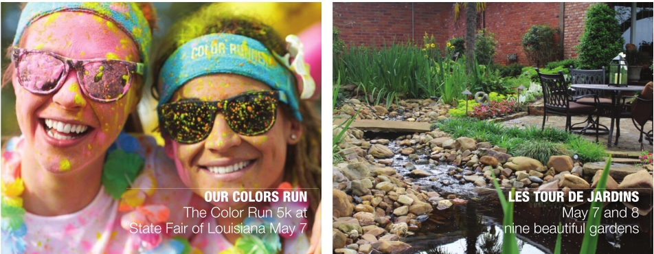 FUN WITH THE FAMILY MAY 3: TRES DE MAYO, Get the celebration started early at Ki Mexico while helping The Philadelphia Center during Give for Good. Extended happy hour from 4 to 8 p.m. and a portion of your order will be donated during Give for Good. MAY 14: MARCH FOR BABIES, This family-friendly event where the community comes together to raise money to support research, services, education and advocacy in the fight against prematurity, birth defects and infant mortality will be held at the Loyola Athletic Complex. Registration begins at 8 a.m. and the 1.5 mile walk begins at 9 a.m. Interested walkers and donors can visit marchforbabies.org to sign up as an individual or family, start a team, or donate. For more information about March for Babies, contact Ashley Morgan at 318-751-9225 or amorgan@ marchofdimes.org MAY 7-8: LE TOUR DES JARDINS, The Northwest Louisiana Master Gardeners will hold their annual spring garden tour, Le Tour des Jardins. This year’s garden tour will take you through eight beautiful private gardens throughout Shreveport. From patio gardens to lush and stately formal gardens there is no shortage of ideas and inspiration for your own special outdoor space. Tour hours will be 10 a.m. to 5 p.m. on May 7, and 1 p.m. to 5 p.m. on May 8. Advance tickets are $10 and can be purchased at any Citizens National Bank, or by calling the Master Gardener office at 698-0010. Tickets may also be purchased at any garden on the days of the tour for $15. MAY 19, 26: PROVENANCE FARMERS’ MARKET, the annual farmers market will take place from 4 to 8 p.m. at Provenance. Concert lineups to be announced. MAY 26-29: MUDBUG MADNESS FESTIVAL, Mudbug Madness, which was named a Top 20 Event for 2015 by the Southeast Tourism Society, features three stages of live entertainment as well as arts and crafts vendors, activities for children, and Louisiana crawfish served every imaginable way. The festival is organized and presented by Downtown Shreveport Unlimited and sponsored by CenterPoint Energy. Complete festival details are available at www.mudbugmadness.com. JUNE 24-25: 66TH ANNUAL LOUISIANA PEACH FESTIVAL, This annual festival in Ruston includes arts and crafts, children’s activities, a rodeo, pageant, golf tournament, parade and great music. The festival opens Friday at 5 p.m. and Saturday at 8 a.m. Prices are $10 a day and $15 for a weekend pass. Go to www.louisianapeachfestival.org.