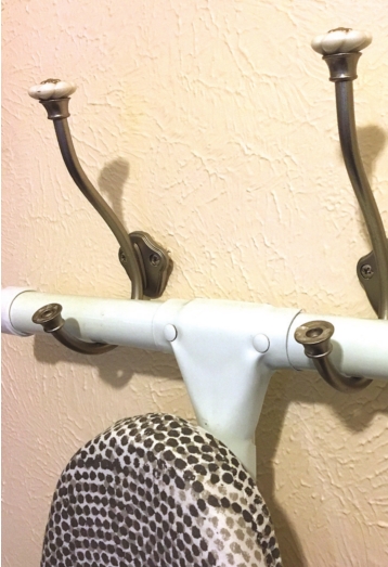 Need a spot to place your ironing board? Use a couple of coat hooks mounted to the wall, and you’ve instantly got a place to hang your ironing board.