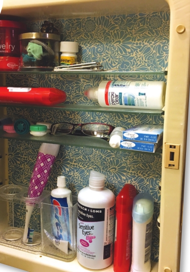 This simple DIY project is one that literally only takes a few minutes, costs less than $15 and can make a small decorative change to your home instantly. If your home is older like mine, chances are that you have a medicine cabinet (or two) in your bathroom. One way to revamp the inside is to put up some contact paper on the back wall of your medicine cabinet. A simple design, a pop of color, a floral pattern or even a funky design can instantly change the entire look of your once drab medicine cabinet. Because contact paper isn’t permanent, you can also switch out the design as much as you want.
