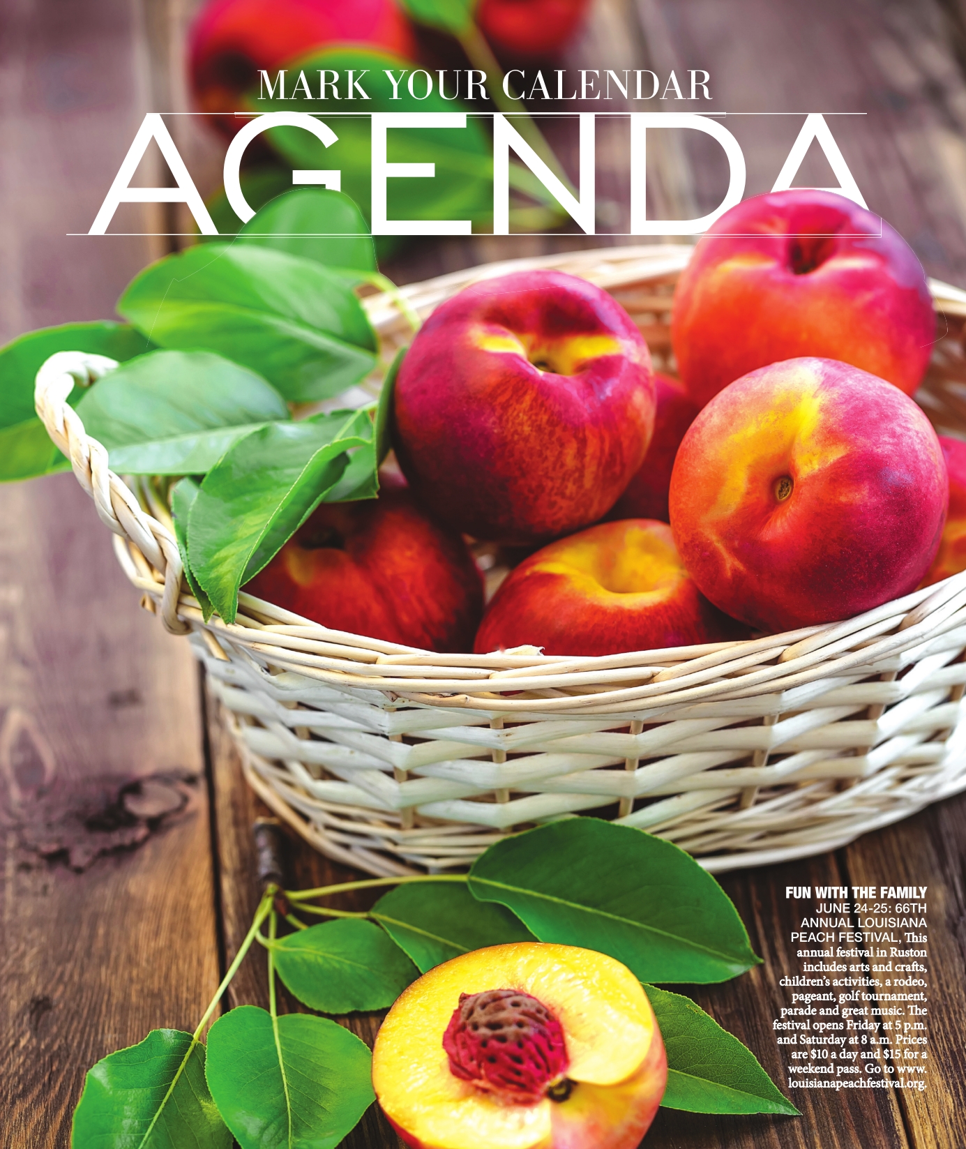 SPECIAL EVENTS THROUGH DEC. 17: BOSSIER CITY FARMERS’ MARKET, Pierre Bossier Mall parking lot, with over 200 vendors that includes farmers with fresh fruits and vegetables, makers, hobbyists, baked goods, entrepreneurs, crafters, artists, restaurants, food trucks with Louisiana cooking, and much more. The familyfriendly event is free, open to the public from 9 a.m. to 2 p.m. and has ample convenient parking located in the south parking lot of Pierre Bossier Mall. THROUGH JULY 8: MALL ST. VINCENT’S SOUTH HIGHLANDS MARKET, The summer market featuring chefs, gardeners, artists and handcrafters will take place from 5 to 8 p.m. every Friday under the large tent in the mall parking lot. Pet friendly. Free. Call 227-9880 or e-mail apexeventsllc@ gmail.com. JUNE 4-AUG. 27: SHREVEPORT FARMERS’ MARKET, will have over 120 booths of locally grown produce, meat, honey, plants, delicious artisan food products, a Market Café and music. Open every Tuesday from June 7 - July 19, and Saturday with the exception of June 18 underneath the Spring Street Bridge. Visit www. shreveportfarmersmarket.com. JUNE 9: SHREVEPORT GREEN’S FEAST, This annual dinner will feature local produce and other locally sourced fare in a four-course dinner with accompanying wines. Cocktails start at 6:30 p.m. with dinner at 7 p.m. in Greenleaf Park in Provenance. Call 219-1888 ext. 16. Seating is limited. JUNE 18: SHOP ’TIL YOU DROP’S WEDDING AFFAIR, This show will feature a bridal open house and tasting from 10 a.m. to 5 p.m. at the Bossier Civic Center. Admission is $5. Visit www.shoptiludropla.com. 564-9489 or 470-6714. JUNE 24-25: 66TH ANNUAL LOUISIANA PEACH FESTIVAL, This annual festival in Ruston includes arts and crafts, children’s activities, a rodeo, pageant, golf tournament, parade and great music. The festival opens Friday at 5 p.m. and Saturday at 8 a.m. Prices are $10 a day and $15 for a weekend pass. Go to www.louisianapeachfestival.org.