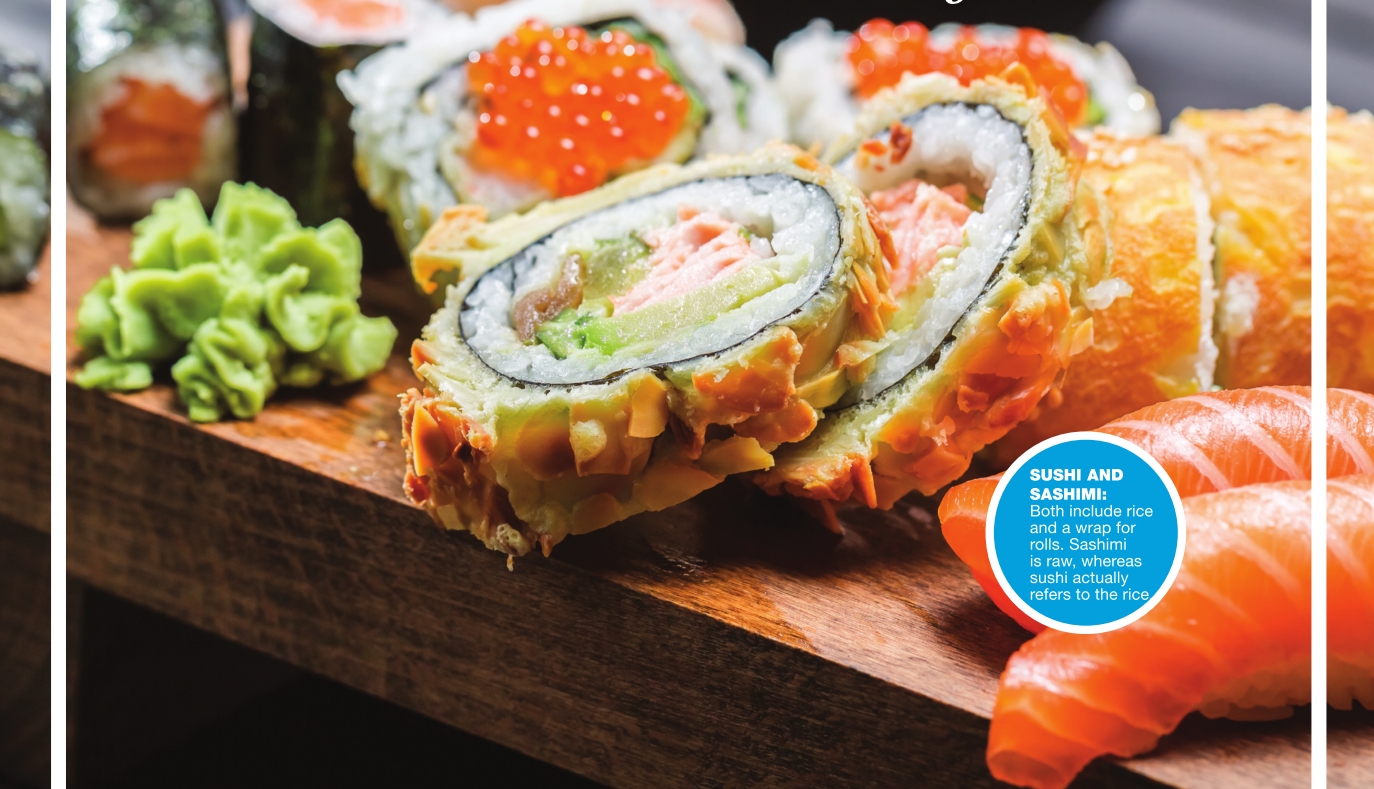 COOKING with Accents Sushi Roll In The Summer With the heat of summer upon us, we are always looking for fresh, cool meals to prepare that take advantage of the bounty of summer produce in the markets. Today, I want to explore the refreshing elegance of Asian cuisine. Japanese sushi and sashimi provide superior nutrition, excellent flavor and beautiful presentation, while still satisfying the most voracious appetite. Although often confused, sashimi and sushi are very different in their preparation as well as presentation. Sashimi is typically made with raw ingredients. Sushi can be made with raw ingredients, but the word “sushi” has more direct reference to the way the rice is prepared. The actual translation of “sushi” means “sour-tasting,” which refers to the vinegar added to the rice during the cooling process. On a hot summer day, sushi rolls are a great treat, especially served with a wonderful ahi sashimi poké (pronounced pokey) salad. End the meal with an uplifting green tea ice cream. All served cool and fresh. The ingredients for these dishes can be found at most Asian markets, and the recipes are simple, fun to make and easily customized. We hope you find our cool Asian delights a beautiful and satisfying change of pace. Who knows, you may tap into an undiscovered talent and become the next great sushi chef. See recipes on next page See also