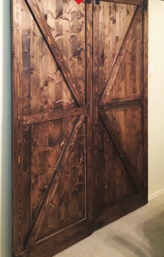 Not too long ago, I saw someone advertising their craft of creating unique sliding barn doors. I threw out the idea to my husband in a casual conversation, suggesting that we do this to separate our bathroom from the bedroom, and he felt confident enough to try and make them himself.