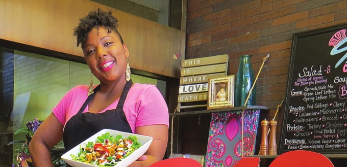Chef Monique Armand through her small sandwich shop downtown, Sassi