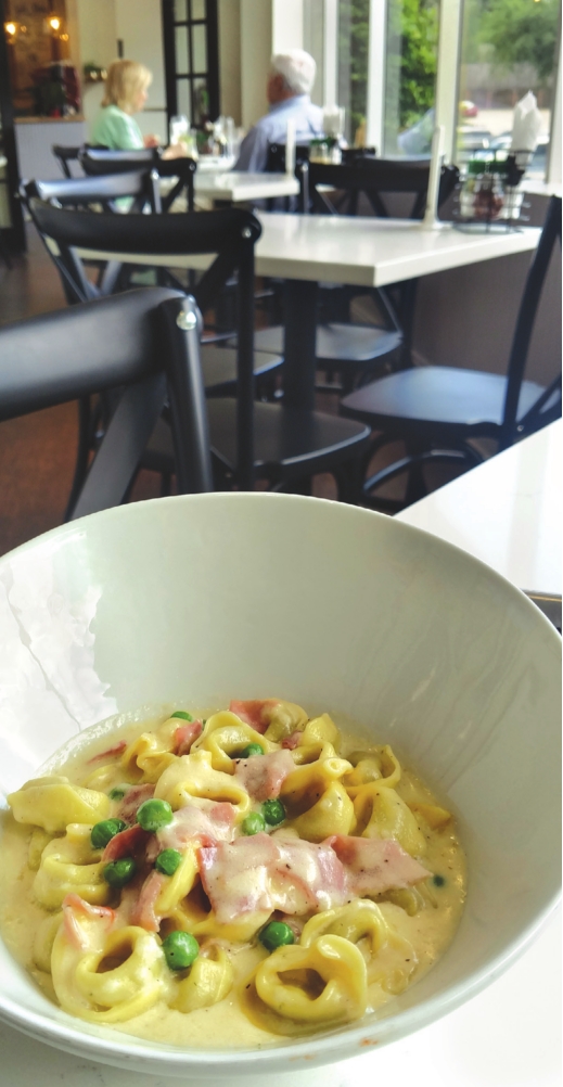 Later that same week, while running errands on Pierremont Avenue, I came across the new Giuseppe’s PastaCaffé just in time to catch a late lunch. The cheerful staff was very helpful, discussing the menu and walking me through the ordering process at the counter. I was excited to see the Beef Tortellini in Cream Sauce recipe tossed with green peas and prosciutto that was my favorite from the original fine dining restaurant, so of course, I started there.