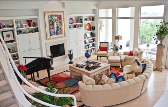 Tina and Gary had previously made their home in Southern Trace, when a whim brought them to look at properties on the lake. They only became serious about actually acquiring one when they encountered the view they now enjoy. With simple alterations and memories of their beloved Greek Islands in mind, they’ve created the perfect marriage of existing architecture and personal style.