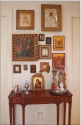 On the landing between the rooms, each of which has its own bath, is another nod to their ancestry – a Greek Orthodox “Iconostasis” – a collection of icons, some of which are 300-years-old, forming a small family shrine.