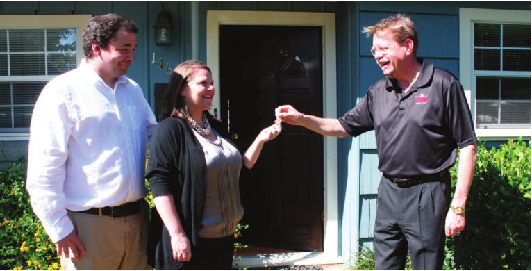 Daniel and Michelle Booth get the keys to their first home from realtor, Keith Kiper.