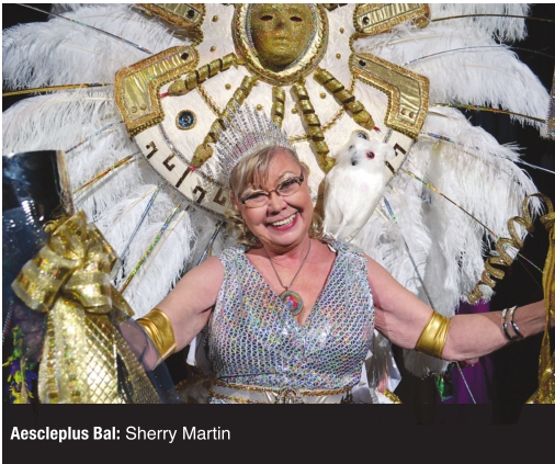 Aesclepius Bal: Queen Sherry Martin stood on stage with her back to the audience and made a dramatic entrance to the floor of the CenturyLink Center at the Krewe of Aesclepius Bal Masque and Tableau held Feb. 1. Victor Crusan as Caesar Flickerman from the “Hunger Games” emceed the more than two-hour presentation that included such characters at The Joker, Captain Nemo, Captain America and Miss Marvel. Court members threw beads and items that lit up. Former queens gathered for a photo on the steps just before Louisiana Crossroads provided post-bal music.