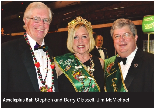 LSU: Caroline Boley, Hunter Hopkins Aesclepius Bal: Queen Sherry Martin stood on stage with her back to the audience and made a dramatic entrance to the floor of the CenturyLink Center at the Krewe of Aesclepius Bal Masque and Tableau held Feb. 1. Victor Crusan as Caesar Flickerman from the “Hunger Games” emceed the more than two-hour presentation that included such characters at The Joker, Captain Nemo, Captain America and Miss Marvel. Court members threw beads and items that lit up. Former queens gathered for a photo on the steps just before Louisiana Crossroads provided post-bal music.