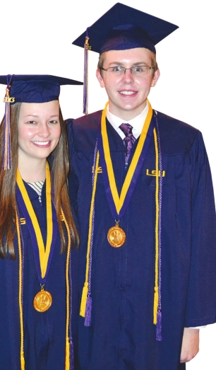 LSU: Two local LSU-Baton Rouge students who graduated Dec. 20 were recognized at a ceremony with Dr. F. King Alexander, president and chancellor of LSU, for having straight A’s throughout college. They are Caroline Boley, a graduate of Captain Shreve High School, and Hunter Hopkins, a graduate of Byrd High School. They received the University Medal, LSU’s highest academic achievement. Boley received a bachelor of art from the College of Humanities and Social Sciences with plans to be a history teacher, and Hopkins received a bachelor of science degree from the College of Science. He will attend medical school.