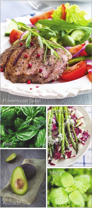 These leaves and herbs rich in vitamins and anti-oxidants are just a sampling of the options available to make a vibrant mixed salad. Although the portions are always a personal choice, my ideal mixed salad includes three to five leaf selections including an herb, combinations of fresh fruit and vegetables, a cheese, plus a legume, seed or nut. Some of my favorite salad combinations are:
