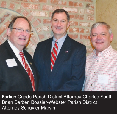 Barber: The committee to elect Brian Barber Shreveport City Judge held an announcement reception and fundraiser March 3 at Savoie’s. Barber is Caddo assistant district attorney and was introduced by District Attorney Charles Scott. Numerous elected officials and family and friends attended.