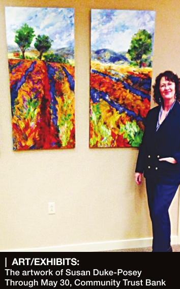 THROUGH MAY 30: THE ARTWORK OF SUSAN DUKE-POSEY, original Impressionist works in oil on canvas, applied with lavish palette knife strokes. Free. Community Trust Bank, 1350 E. 70th St., Shreveport.