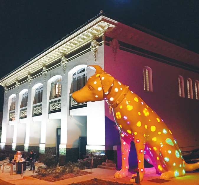 The Shreveport Regional Arts Council unveiled Art the dalmatian, the newest addition to the Central ARTSTATION on Nov. 6. The solid white sculpture is covered with donated dots, purchased by donations, that each light up when a dot donor’s name is selected from a keyboard. The 19 and a half foot tall dalmatian is a “commemorative housewarming” gift to SRAC from William Joyce and Brandon Oldenburg of Moonbot Studios. See also