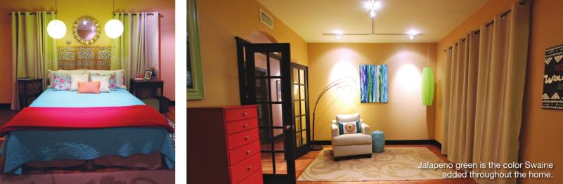 of the dominant colors in the kitchen is “Jalapeno Green” by Benjamin