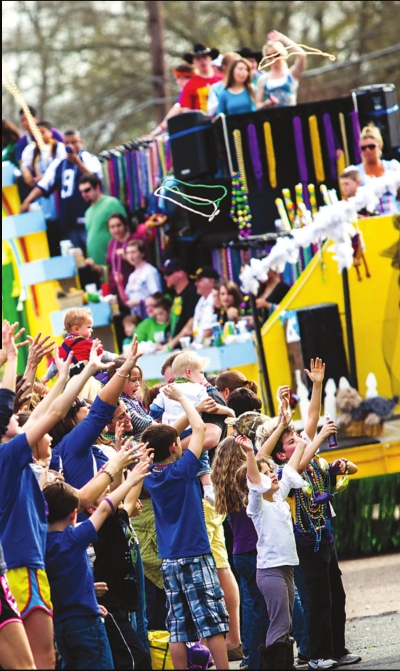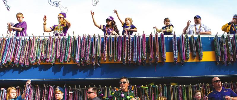 course, thousands of strands of beads and plastic trinkets are thrown,