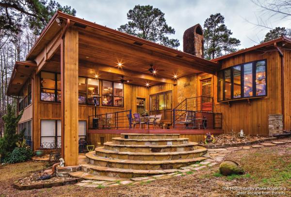 A peaceful and relaxing retreat located on Cross Lake sits away from the hustle and bustle of the city yet is convenient to church, work and other activities for the Holton family. Situated on 2 acres, the family can view and enjoy the scenic lake views from every room in their house.