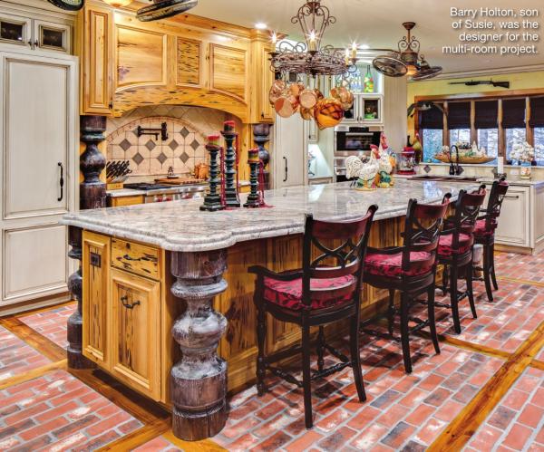 Barry’s design included a 5-by-12 granite island supported by reclaimed porch balusters, a combination of pecky cypress and custom hand-rubbed cabinets, Wolf/Sub-Zero and Miele appliances, hand forged copper sinks, two MinkaAire gyrating ceiling fans, oil-rubbed bronze fixtures and a special place designated for his mom’s beautiful Savoy House oil-rubbed bronze pot rack that is always adorned with copper pots.