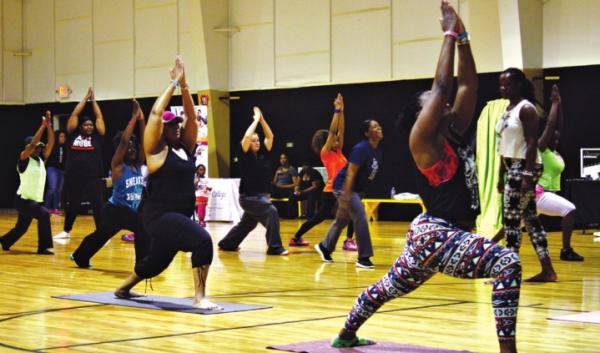 “Downward Dog.” “Warrior Pose.” These were some of the yoga positions Heather Glover led Prudhomme and his birthday guests through inside the Shantel Hardison Sports Center. Some were beginners. Others were Yoga veterans.