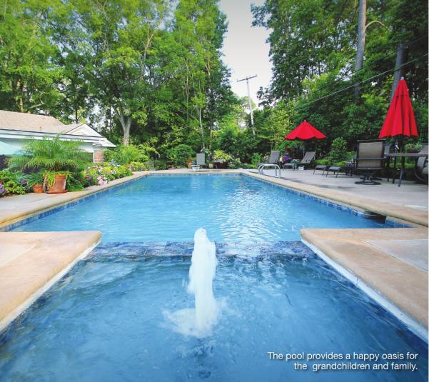 Since the house was built in 1950, the pool was outdated and needed renovations. Originally built with a hot tub, the Mortizes decided to fill in the hot tub and made it a shallow, baby pool for their grandchildren.
